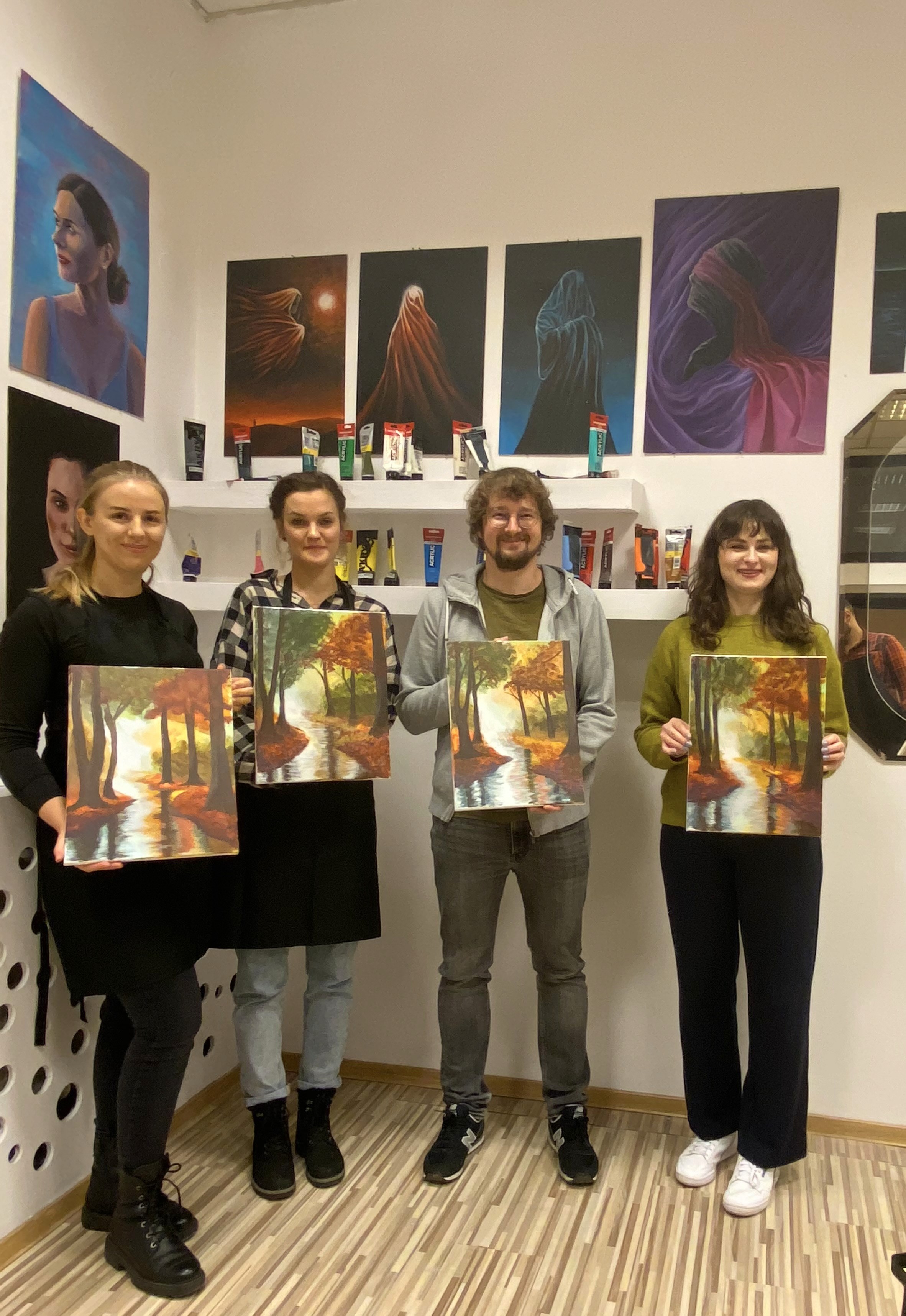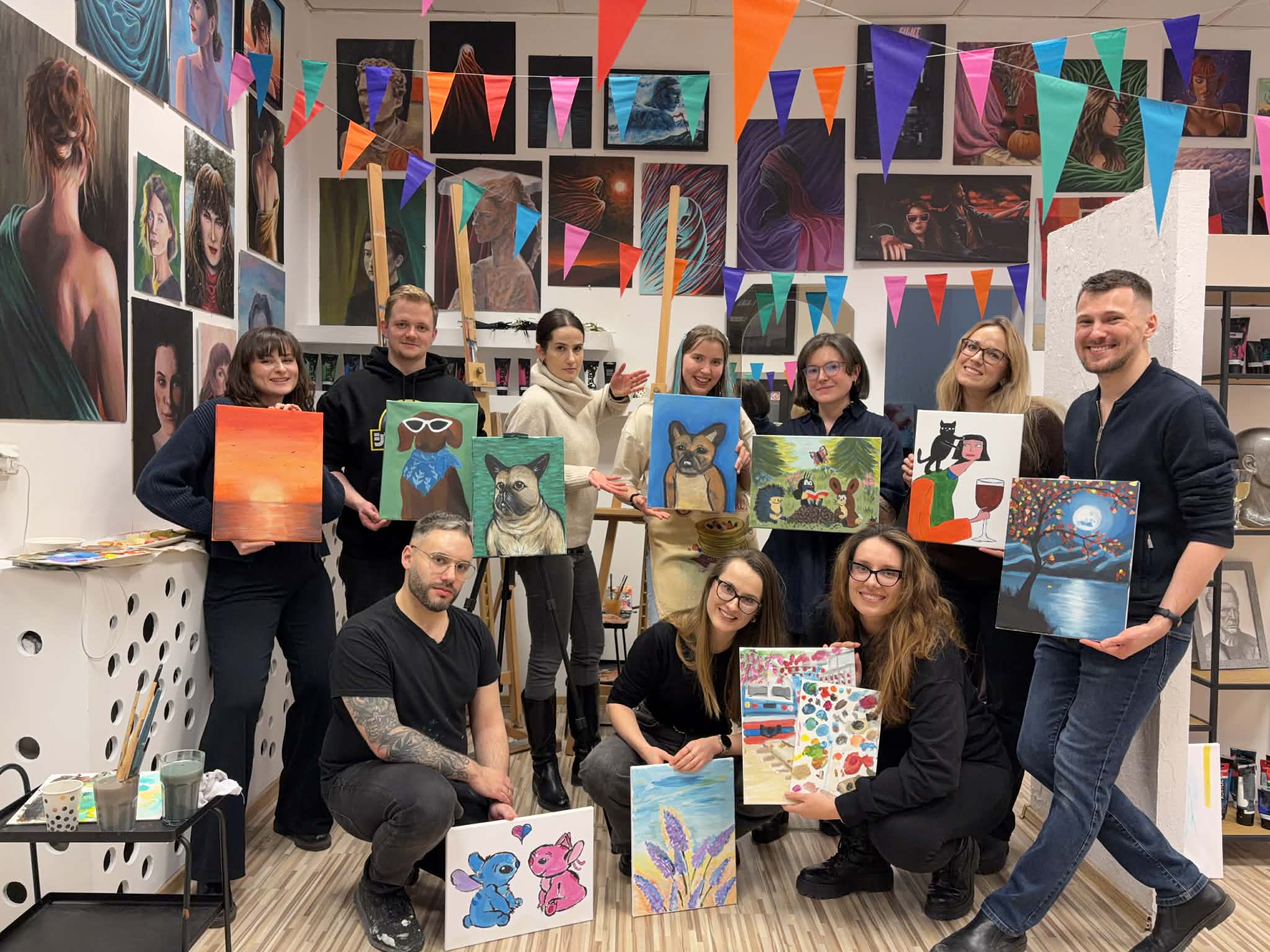 • Wspólnie w grupie od 6 do 12 osób malujemy jeden wybrany obraz